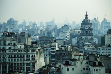 View of the city at sunset, Buenos Aires, Argentina. Copy space for text