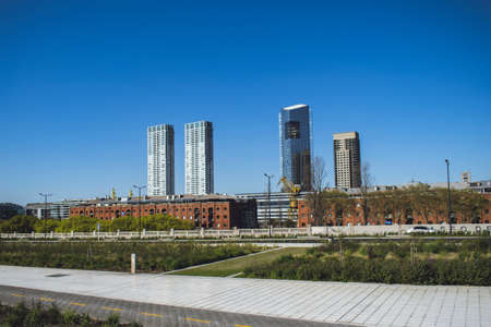 Skyscrapers against blue sky in a residential area of Puerto Madero, Buenos Aires, Argentina.