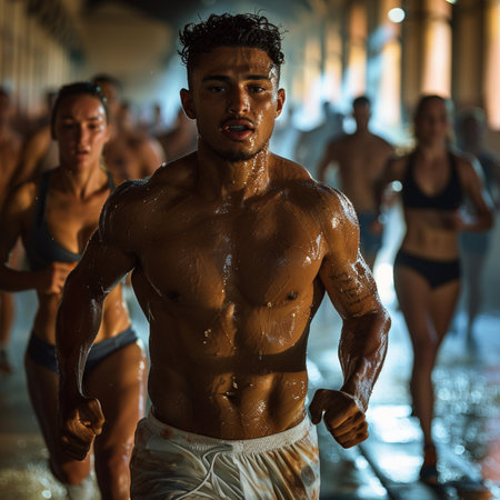 AI Generated. Intense expression of determination from a man during intense workout at sunset