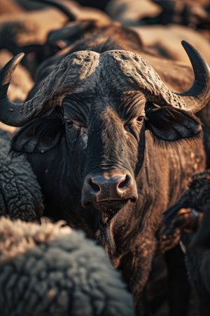 Powerful Portrait Buffalo Bull Syncerus Caffer African Wildlife Strength