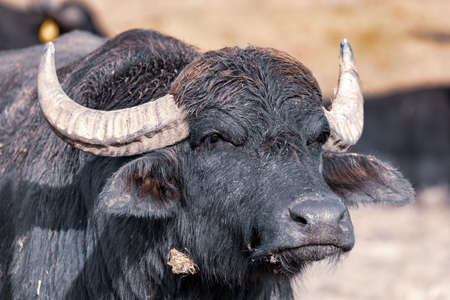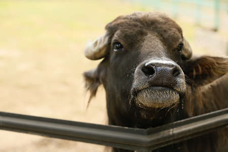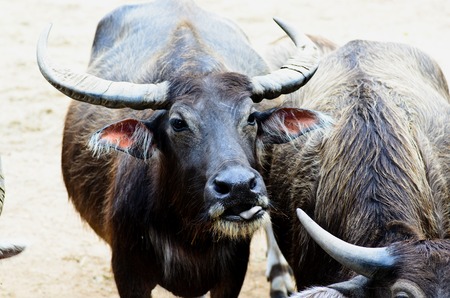 Big buffalo in zoological garden, closeup
