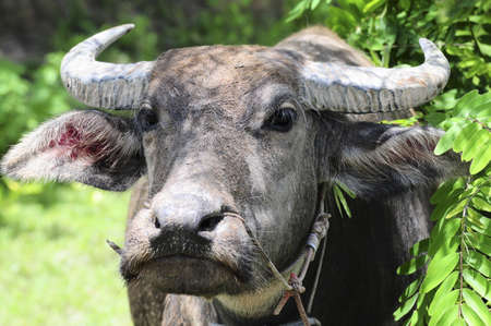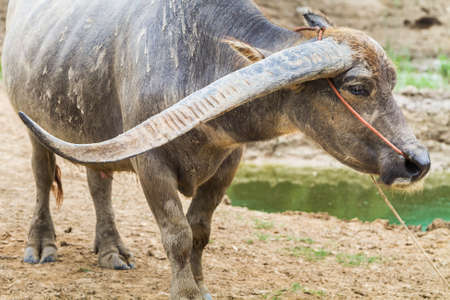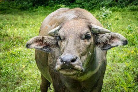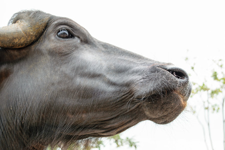 Close up of Water buffalo (Thai buffalo) at countryside in Southern of Thailand. A picture of a buffalo in the stall