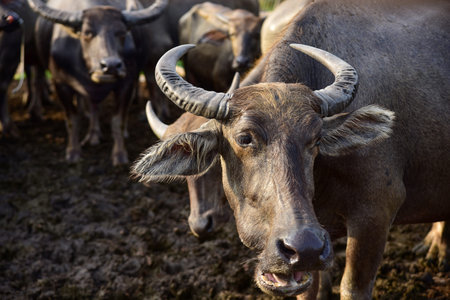 Thai buffalo herd in the farm