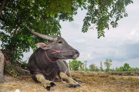 Water buffalo resting under the tree