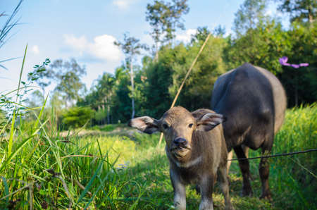 Buffalo in the farmland in the nature