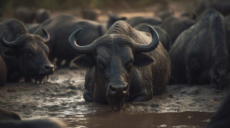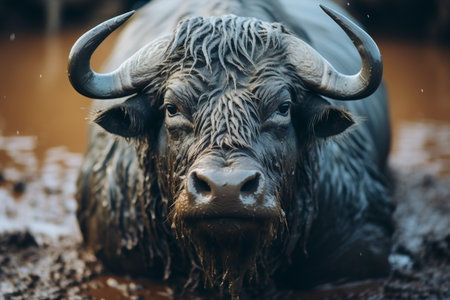 African buffalo in wildlife closeup warm style
