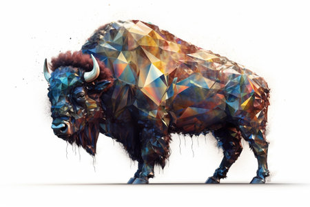 Bison in low poly style on a white background. 3d rendering