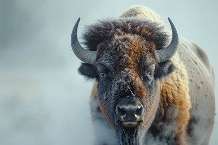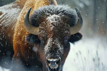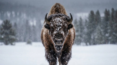 Imposing Bison Portrait: Snow-Covered Majesty in the Wild