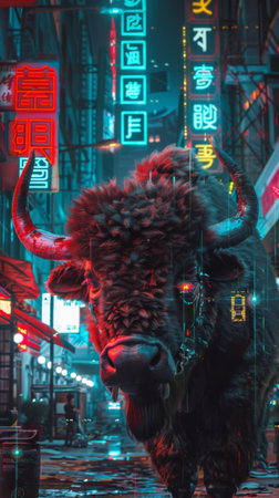 American Bison with American Bison with holographic overlay . The bison is an American Native heritage symbol.