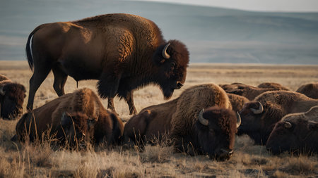 Wild bison herd in the prairie landscape