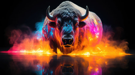 a bison with rainbow colors