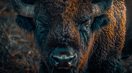 Majestic American Bison Portrait Wildlife Photography of a Powerful Bison on a Dark Background