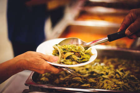 The hands of poor have been aided by charity food to alleviate hunger: The concept of social sharing