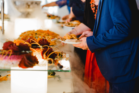 Crowd of people enjoying buffet food meal dining Food Options Eating Concept in hotel buffet