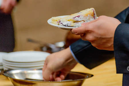 The people at the party eat sweets and cakes. All kinds of snacks. Coffee break with sweet snacks - muffins, cookies, cheesecakes, muffins