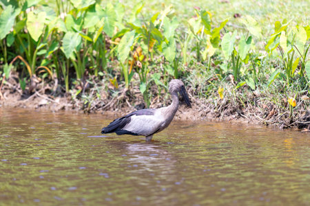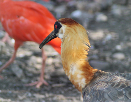 beautiful black faced ibis standing at the water side, tropical bird specie from South america