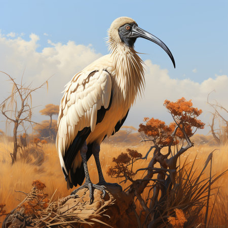 Buff-necked IBIS walking across a dry marsh bed in the Pantanal