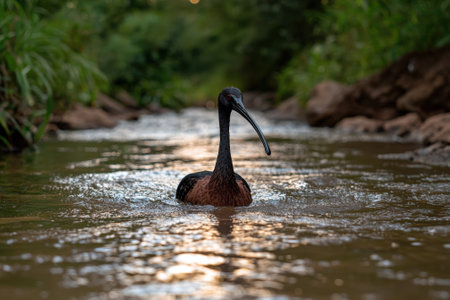Glossy Ibis in the lake at Jeddah, Saudi arabia
