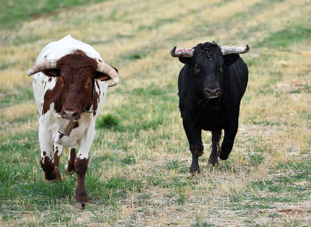 groups of bull running on the spanish cattle farm
