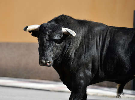 black bull with big horns on spain