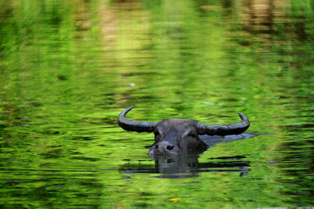 the domestic buffalo hides in water from a heat