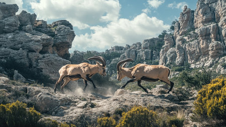 Ibex fighting. Illustration Generative AI