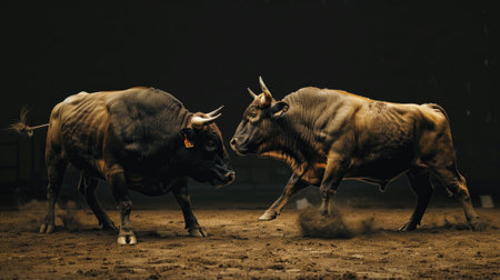 Two bulls stand facing each other