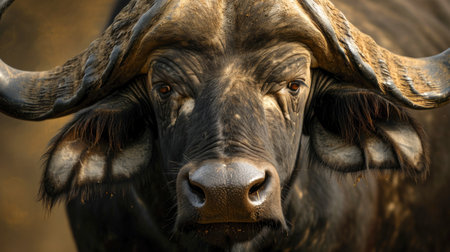Powerful Portrait Buffalo Bull Syncerus Caffer African Wildlife Strength