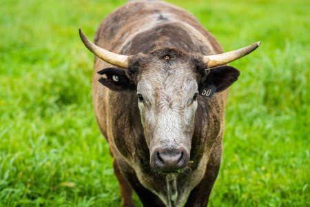 spanish powerful bull with big horns