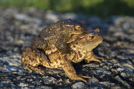 Portait of a pair of Common Toad (Bufo bufo) during spring migration