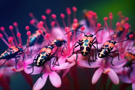 group of multicolored beetles on a flower, created with generative ai