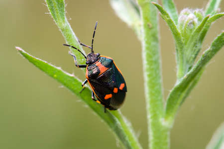 Beetle on a green plant in nature. Macro