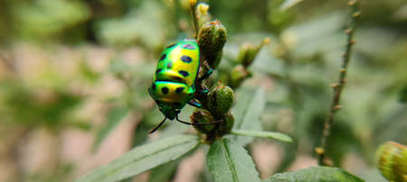 jewel beetle on leaf in green nature