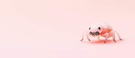 A unique white crab is seen against a soft pink backdrop showcasing its distinct features and lively stance in a tranquil setting.