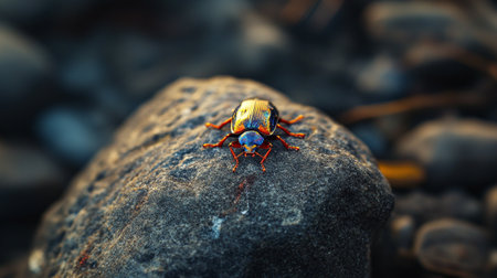 Beetle on a rock in the wild. Wildlife scene from nature.