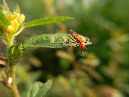 closeup of the red stinkbug with nature background