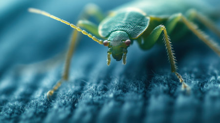 Bedbug close-up against a fabric background, providing detailed imagery for pest-related themes