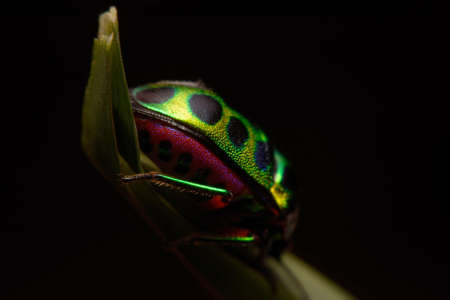 Macro shot of colorful beetle isolated on black background with clipping path