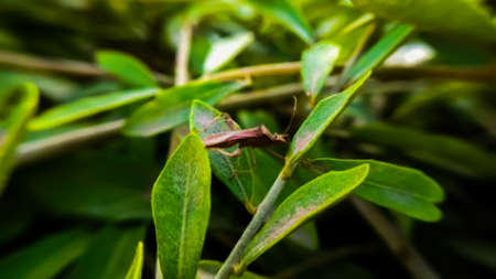 Gonocerus acuteangulatus on leaf in india village garden image Gonocerus acuteangulatus image