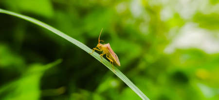 Leptocorisa oratorius insect on leaf in indian village farm image Rice ear bug Insect in indian village