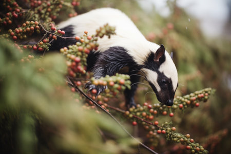 Vivid Orange Breasted Bird Perched on a Branch, Eyeing Delicious Wild Berries in Nature s Paradise