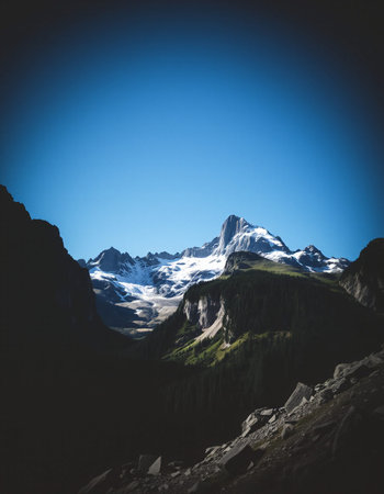Mountain landscape with snow-capped peaks in the Alps.