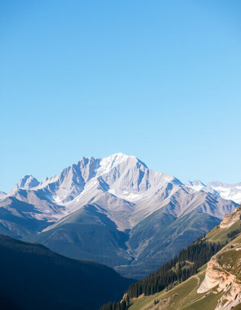 Mountain landscape with snow and clear blue sky.