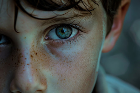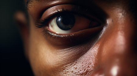 Closeup of a persons eyes showcasing natural reflections adding depth and intrigue to the portraits mood