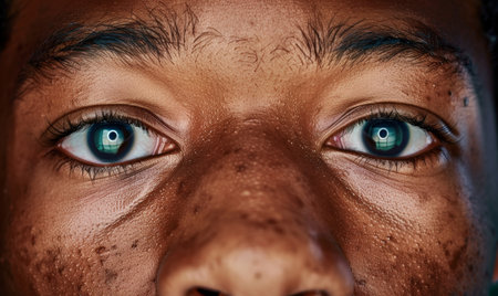 Intense macro shot of a person's eyes with detailed textures. Hyper-realistic close-up. Human emotion and vision concept. Design for health brochures, scientific presentations. Macro shot with high detail focus.