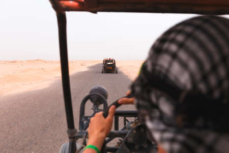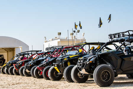 Doha, Qatar- February 23, 2018: Off road buggy car in the sand dunes of the Qatari desert.