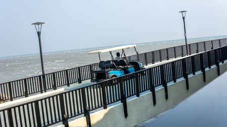Sepang, Malaysia - September 7, 2019: Unidentified worker man driving a buggy car at AVANI Sepang Resort. The buggy ride for the hotel guest to bring their luggage to room and ride around the property.