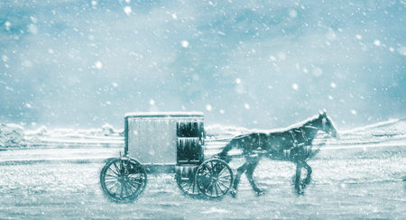Amish Horse and Buggy Traveling on a Residential Road in the Middle of a Snow Storm