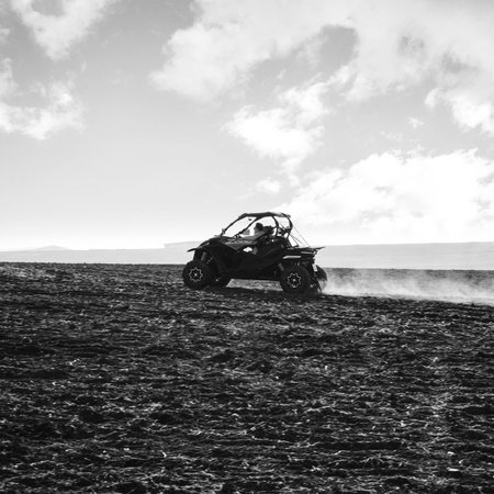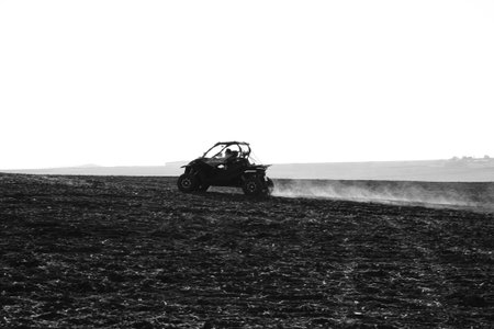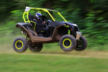 ATV, UTV, buggy, rally riding in a dusty track. Amateur competitions