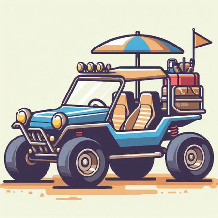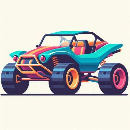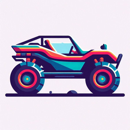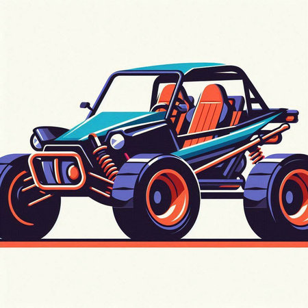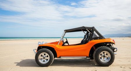 a rugged off-road buggy, parked on the side of a winding road, basks in the warm, golden light of a breathtaking sunset, captured in stunning 8k resolution using a sony alpha a7 mark iv camera, showcasing exceptional detail and realism in this low-angle shot. ai generated